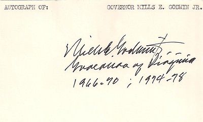 Title (ebay affiliate link): Governor Mills E. Godwin Jr. of Virginia 1966-1970 and 1974-1978 Signed Card