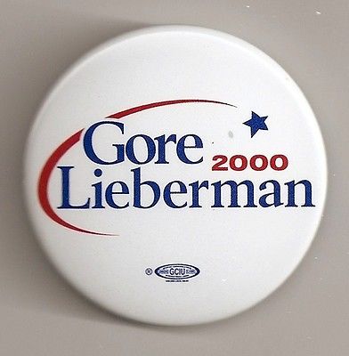 Title (ebay affiliate link): 2000 Al Gore Joe Lieberman President Campaign Button Pin Back White Background