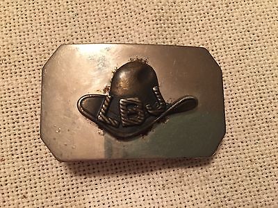 Vintage PRESIDENT LYNDON B. JOHNSON (LBJ) CHROME BELT BUCKLE w/ brass Texas hat