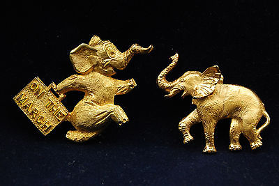 2 Vintage Elephant Pins/Brooch 1)1964 Artcraft Gold Color On The March,2)Napier