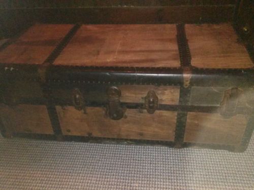 Title (ebay affiliate link): Vintage Wooden Flattop Steamer Trunk wardrobe late 1800 or early 1900