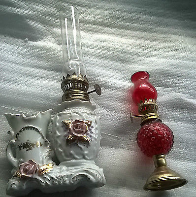 2 x Vintage Oil Lamp bedside Lamp flower Vase c1930 art deco ceramic rose
