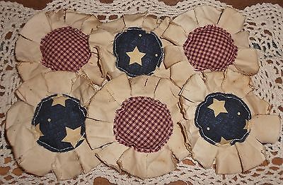Title (ebay affiliate link): Homemade Primitive Americana Red and Blue Fabric Flowers Bowl Fillers Set/6