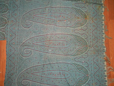antique fabric wool scarf paisley blue cutter scrap victorian craft doll vtg