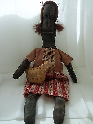 Title (ebay affiliate link): Primitive Black Doll - Red Cream Flower Burlap Farm Chicken