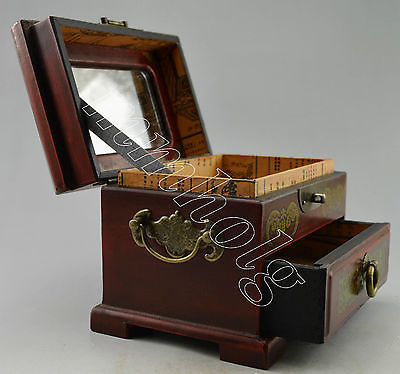Collectible Decorated Old Handwork Wood Painted Dragon Phoenix Dresser & Box