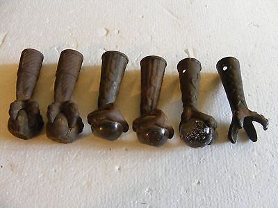 6 ANTIQUE Vintage CAST IRON CLAW Tallons GLASS & WOOD BALL Furniture FEET FOOT