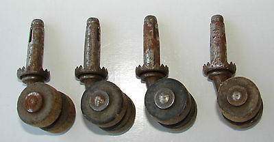 ANTIQUE VINTAGE FURNITURE CASTERS WOODEN DOUBLE WHEEL SET OF FOUR 1 "