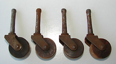 ANTIQUE VINTAGE FURNITURE CASTERS WOODEN WHEELS SET OF FOUR 1 1/8 " GOOD PATINA