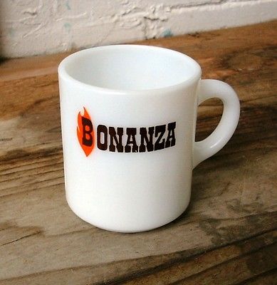 Vintage BONANZA Steakhouse WHITE GLASS Coffee Cup MUG