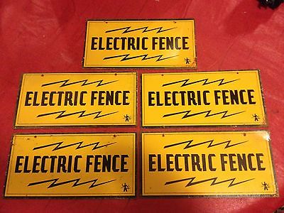 5 - Vintage 8" ELECTRIC FENCE Warning Advertising Tin / Metal Sign