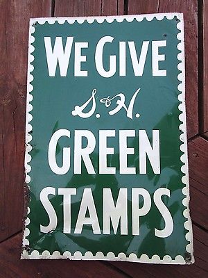 Title (ebay affiliate link): Vintage Painted Tin Sign - We Give S & H S.&H.Green Stamps