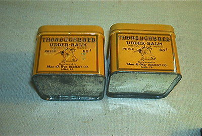 Title (ebay affiliate link): 2 Vtg Tins Thoroughbred Man-O-War Udder Cream remedy Co. Lima PA cow horse