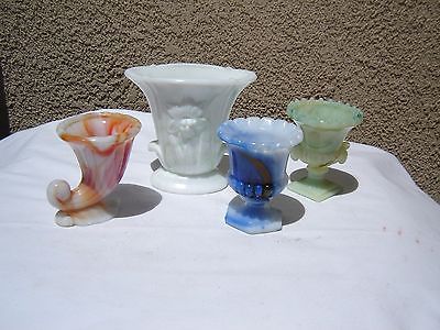 Akro Agate Vogue Merc Co. 4 pieces of slag glass Vases, Toothpicks various color