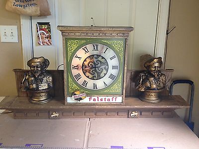 RARE FALSTAFF VINTAGE BEER CLOCK MANTEL WITH MOTION CENTER 39"L X 19"H
