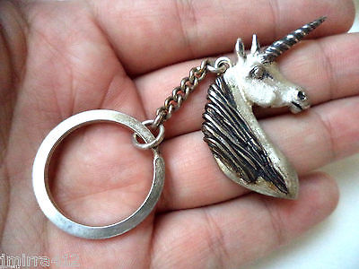 STUNNING VINTAGE STERLING SILVER SIGNED 925 28 GRAMS UNICORN KEYCHAIN!! 586E