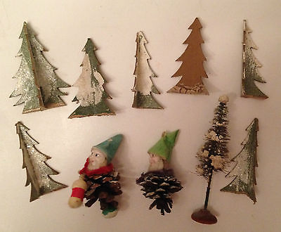 Vintage Christmas Holiday Cardboard House Pine Tree Forest Lot #2 Odd Lot