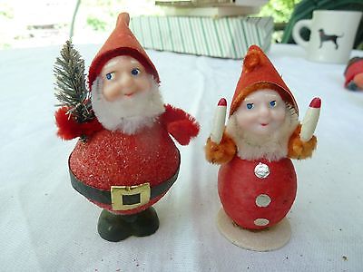 VTG CHRISTMAS SANTA ELF GNOMES LOT OF 2 JAPAN~CHENILE~MICA
