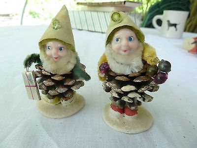 VTG CHRISTMAS PINECONE ELF GNOMES LOT OF 2 JAPAN~CHENILE