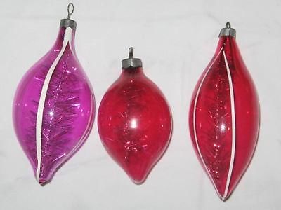 3 Vintage Glass Christmas Tree Ornaments With Tinsel Inside H. Painted USA Made