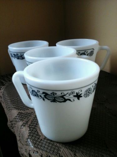 Title (ebay affiliate link): Vintage Set of 4 Pyrex Milk Glass Old Town Blue Onion Coffee Cup Mugs