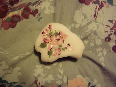 VINTAGE FENTON ? PAPERWEIGHT VIOLETS ON MILK GLASS ARTIST SIGNED B.MONTGOMERY