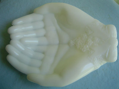 AVON MILK GLASS OPEN HANDS SOAP / TRINKET DISH