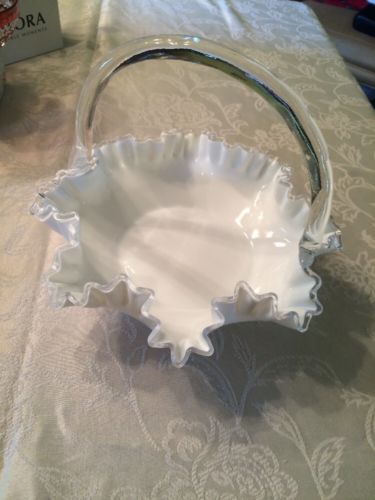 Title (ebay affiliate link): Vintage Large Fenton Silvercrest Basket White Milk Glass Handle Crimped Edge 11"
