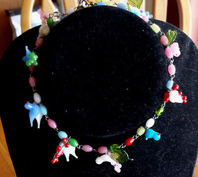 VINTAGE ITALY VENETIAN MILK GLASS BIRD FRUIT SALAD NECKLACE