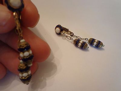 VINTAGE ART DECO DANGLE DROP EARRINGS SAPPHIRE GLASS MILK GLASS CLIP