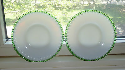 Vintage Fenton Emerald Green Crest Milk Glass Salad Plates, Service for 2
