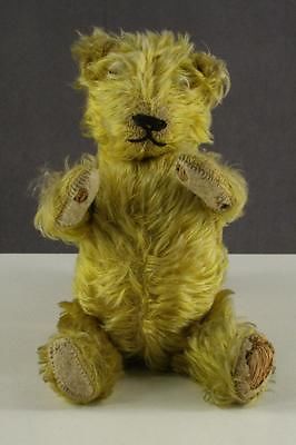 Vintage Early 12" Tall Yellow Mohair & Straw Stuffed TEDDY BEAR Plush Doll