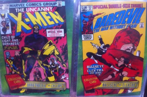 Title (ebay affiliate link): 1999 Marvel Characters 2x Collector Cards Dark Phoenix Cyclops Elektra Bullseye