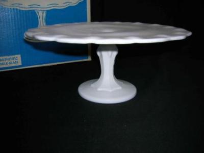 vintage Milk Glass Cake Stand w/box Indiana Teardrop