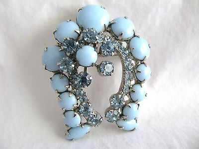 Vintage Juliana Blue Milk Glass Cabochon & Rhinestone brooch
