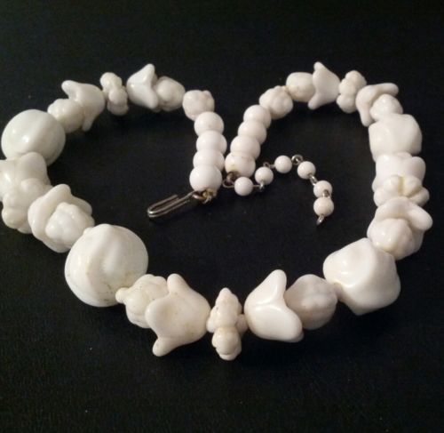 Title (ebay affiliate link): Vintage Milk Glass Flower Graduated Bead Choker Necklace Molded Daisy 020