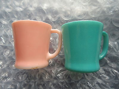 2 Old Retro Fire King Milk Glass Coffee Mugs Pastel Colors