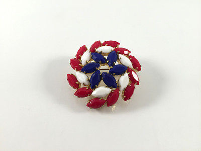 Title (ebay affiliate link): Vintage Red White and Blue Rhinestone Round Brooch Milk Glass Opaque CAB f63