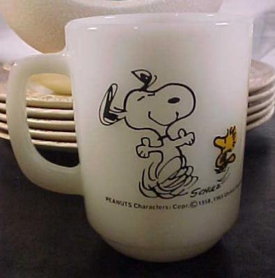 Snoopy Fire-King Milk Glass Coffee Mug Pure Joy