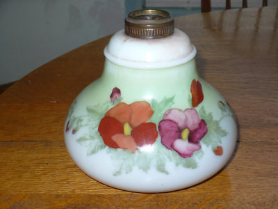 HAND PAINTED MILK GLASS OIL LAMP BASE