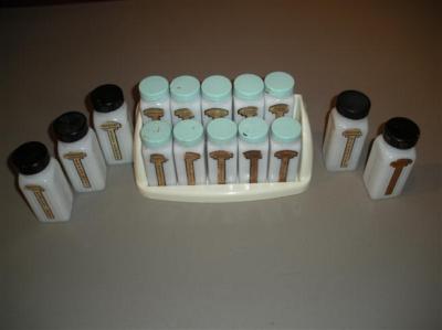 (15) GRIFFITH'S Milk Glass Spice Jar Rack Lot