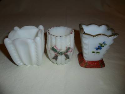 Lot of 3 Antique Toothpick Holders Victorian Milk Glass