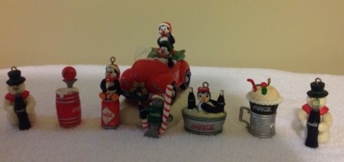 Title (ebay affiliate link): Lot of 7 Mini Coca-Cola Penguin, Snowmen and Coke Ornaments & 1 Penguin Car