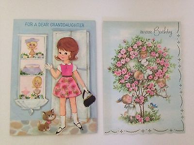 VINTAGE Girl Child PAPER DOLL Clothes CUT OUT Retro Birthday Cars Lot of 2