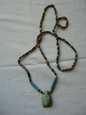 Title (ebay affiliate link): MUMMY BEAD NECKLACE WITH FAIENCE PHARAOH HEAD AMULET.