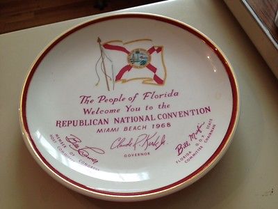 Title (ebay affiliate link): REPUBLICAN NATIONAL CONVENTION COMMEMORATIVE PLATE, 1968, NIXON & AGNEW, FLORIDA