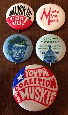 Title (ebay affiliate link): Neat Lot of Five Ed Muskie 1972 Presidential Campaign Pin Pinback Buttons