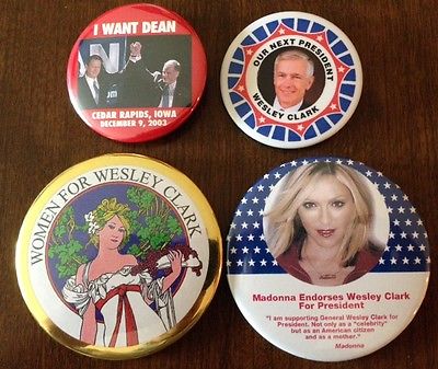 Title (ebay affiliate link): Three Wesley Clark and One Howard Dean Presidential Campaign Pin Pinback Buttons