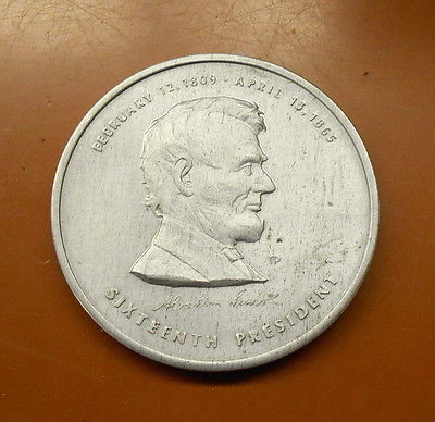 Title (ebay affiliate link): 1973 AMERICANA MEDALLION CO. ABRAHAM LINCOLN WHITE METAL COMMEMORATIVE MEDAL