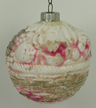 20s PAINTED MILK GLASS FRUIT BASKET CHRISTMAS ORNAMENT